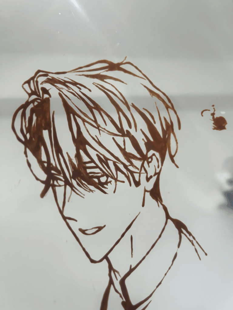 - ちなみに彼の場合はココアと線画で余ったチョコを使って髪と肌の色を再現しています